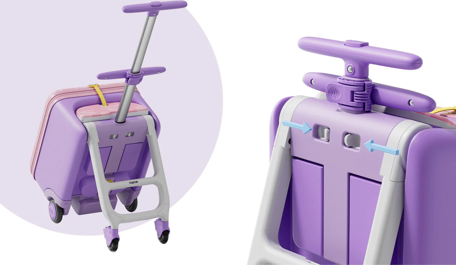The Jovikids JoyRide blends luggage and stroller into one, letting kids ride on top for fun while offering parents a quick-disassemble stroller option. With a comfy PU cushion and adjustable armrest, it ensures a safe and enjoyable journey for little explorers.