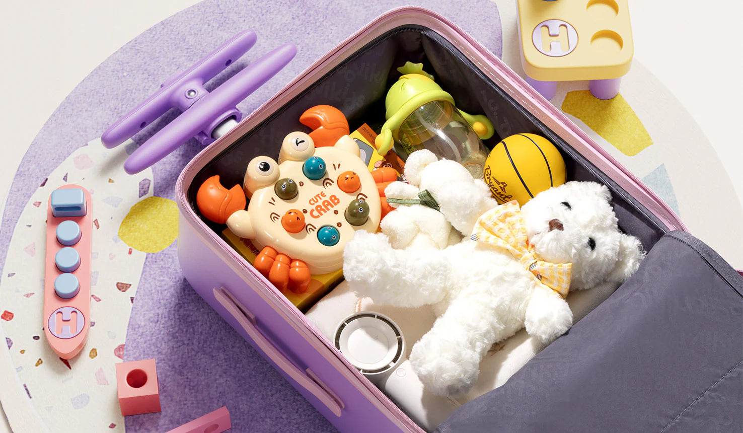 Boasting a 38L capacity with layered storage and zippered mesh pockets, this luggage keeps clothes and toys neatly arranged. A dry-wet separation pocket adds convenience for handling wet items, making travel packing a breeze.