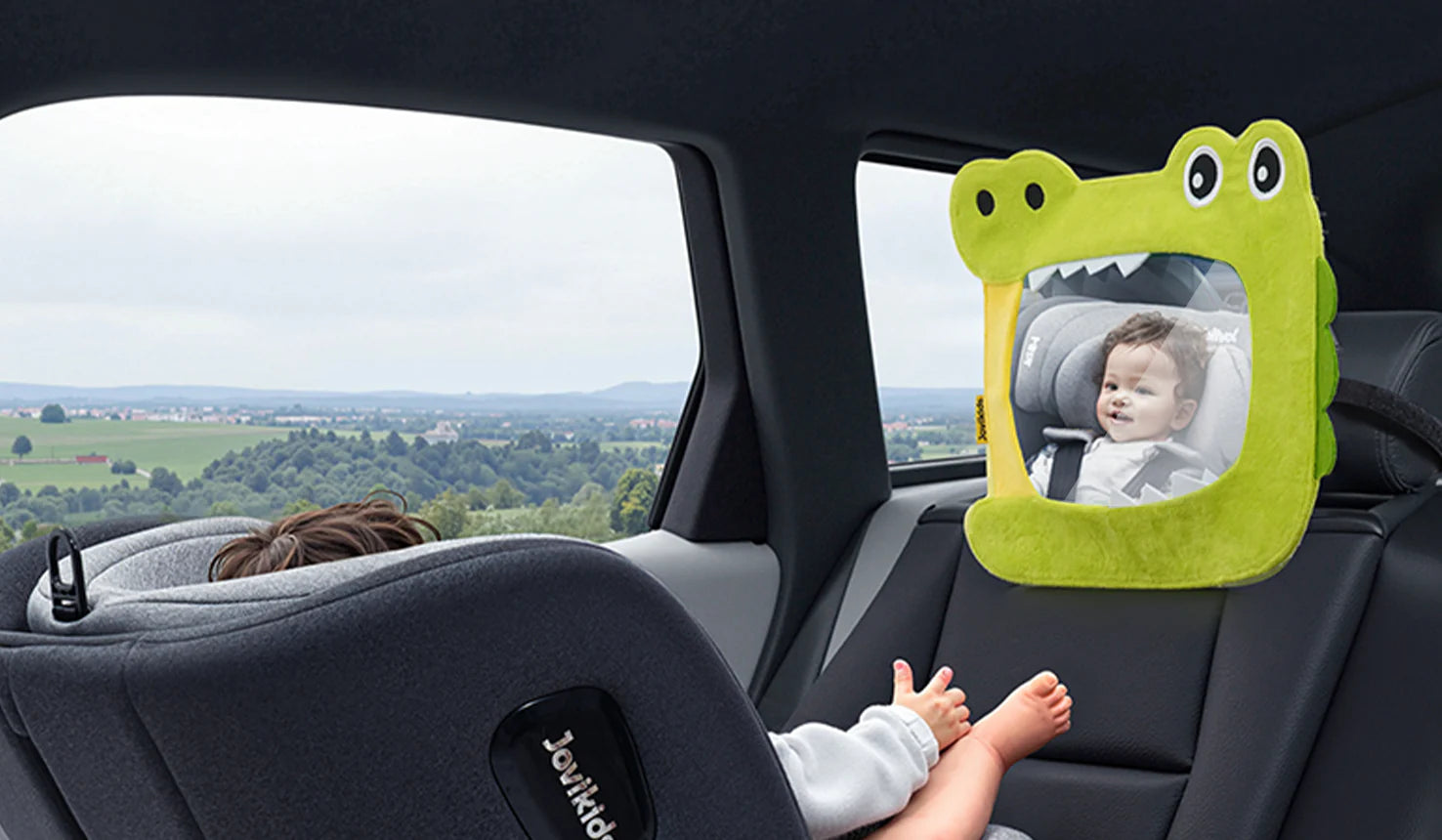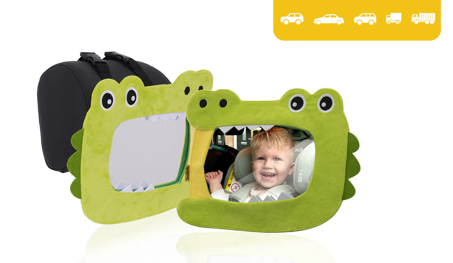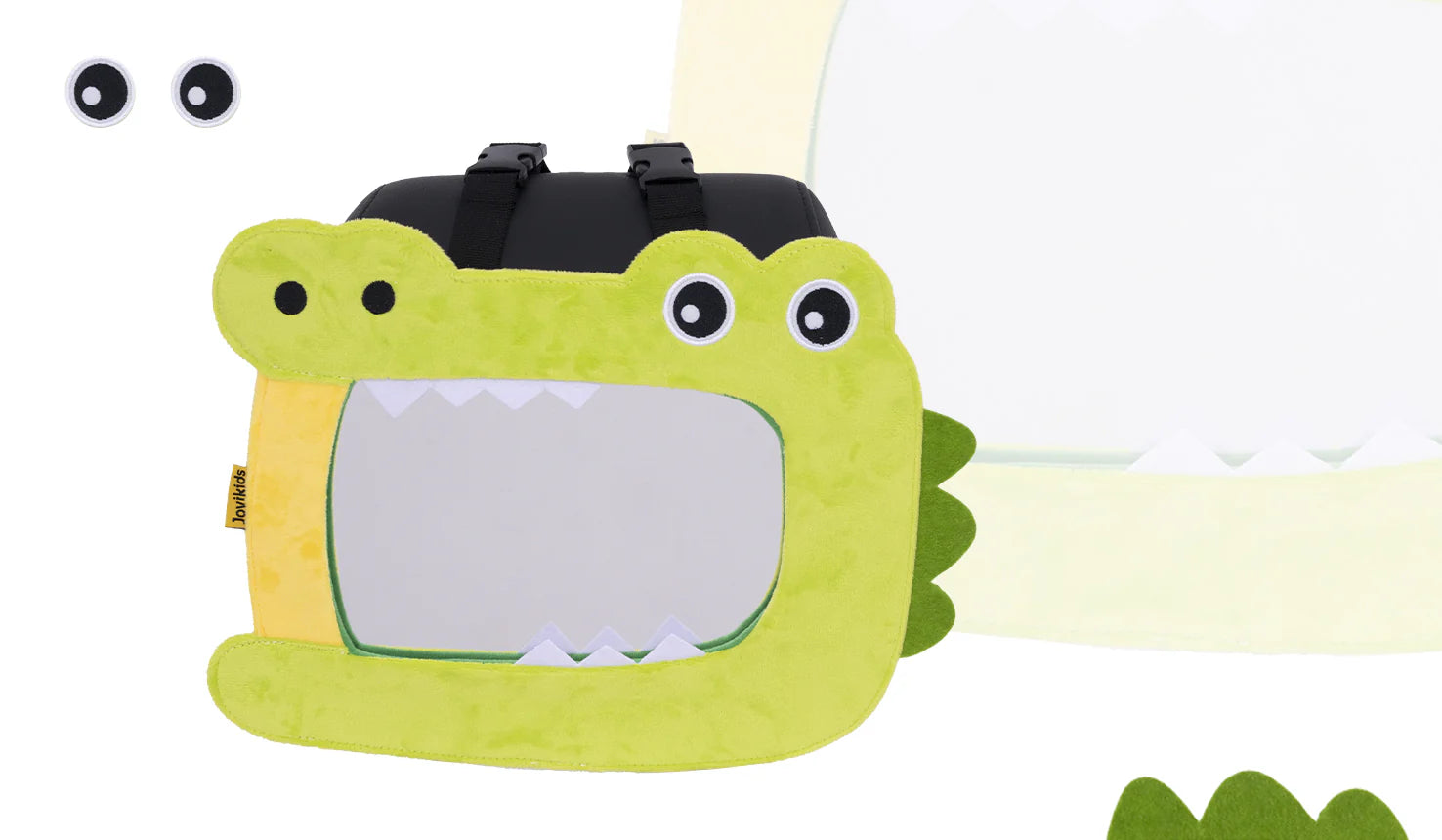 Featuring engaging cartoon characters like crocodiles and rabbits, the mirror captivates your child’s attention, promoting a joyful ride.