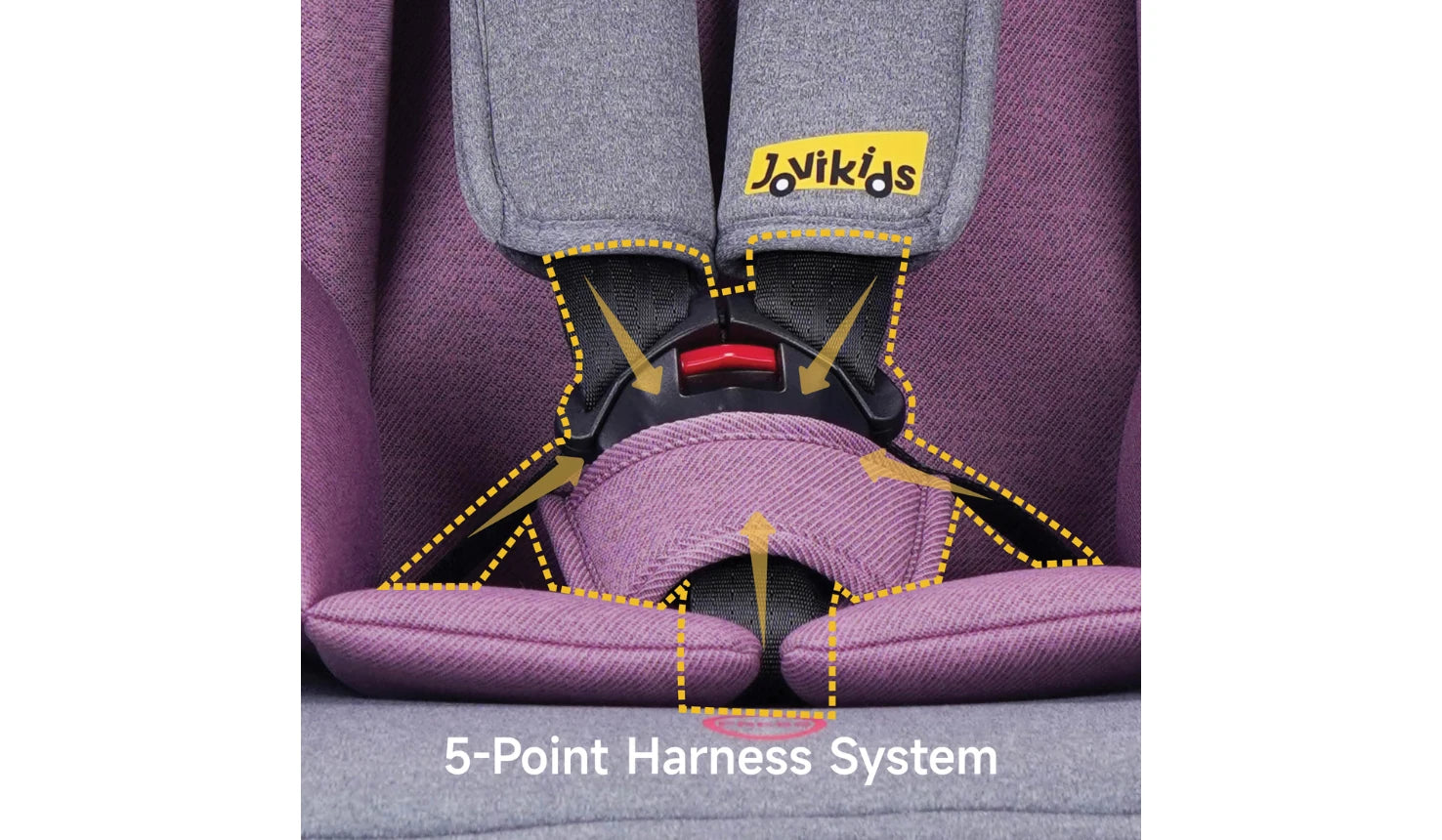 The 5-point harness system ensures child safety, while the full-size headrest and large inner space provide comfort and support for a secure, cozy ride.